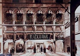 The Blackhawk Restaurant, at Randolph and Wabash streets, opened in 1920. Benny Goodman, Kay Kyser and Louis Prima were among the many famous musicians who performed for the restaurant patrons and on nightly WGN radio broadcasts. In the 1950s, the bands left, and in 1984 the restaurant closed. Its present-day descendantDon Roth's Blackhawkin the northwest suburb of Wheeling, features memorabilia from the original location.