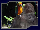 shoulder. Koko signs "bird" as she gets a parrot picture. McClurg is next; he's glad the parrot doesn't know what he is and doesn't shy away. Bella tries to catch the bird.