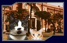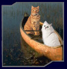 ride down the Nile in a boat to the Great Pyramids at Giza. This time, it's Douglas who is the object of the public's affections; he looks just like those ancient statues of the cat goddess for sale in every souvenir stand. Fortunately, he and Bella, along with Climber and Pinta, escape being turned into cat mummies and follow the rejected presidential team down to the river. It's a three-way race for first as, surprisingly, the cats scrape their paws in the water to help propel the boats along.