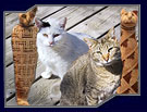 too happy. "What is that thing? Where's it's fur? Is it sick? Is it even a real cat??" Host Phil Kiwi explains that it's a hairless Sphynx cat, but unfortunately, Omar Sharif don't like it! Nevertheless, he is there with the Sphynx to welcome Socks and Ernie to Egypt, followed by Bella and Douglas, and Climber and Pinta. Douglas vaguely remembers these sculptures from the pictures his owner brought home from Las Vegas.